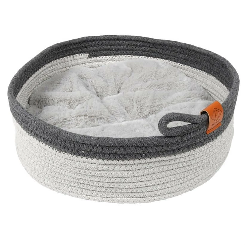 Bu orijinal kedi sepeti, dinlenmek ve saklanmak için ideal bir yer sağlar. Çağdaş tasarım tamamen pamuk ipten yapılmıştır ve sağlanan minder sayesinde evcil hayvanınız için gerçekten rahattır.