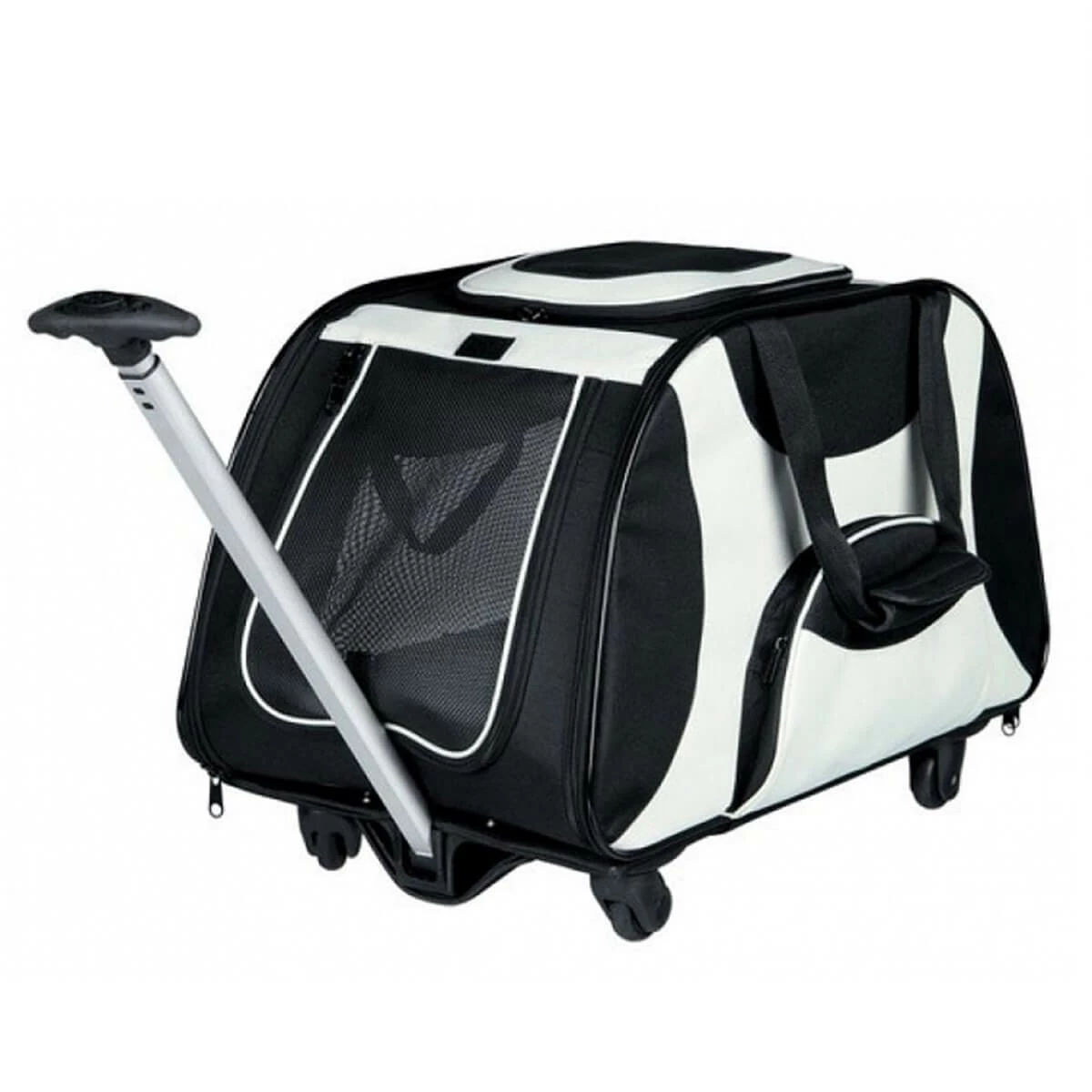 Katlanabilir, yıkanabilir özellikli, tekerlekli çekme özelliği ile kolayca taşınabilir.Yüksek kaliteli malzemeden üretilmiş , pet taşıması için ideal , tekerlekli , teleskopik çekme kolu olan , aynı zamanda çanta şeklinde taşınabilir ön tarafı ve üst tarafı açılabilir , su şişesi , ödül mamaları cebi bulunan , silinerek kolayca temizlenebilen pet taşıma çantasıdır. Siyah ve gri renktedir. Kedi ve küçük köpekler için kullanılan taşıma çantası. Kedinizi bu ürüne alıştırmak için Trixienin 4238 ve 4241 kodlu kedi otu spreyi catnip ürününü kullanabilirsiniz. Kediotu kedinizin ürüne karşı merakını arttıracaktır. Kediniz kedi otu kokusunu aldığında rahatlamış ve sakinleşmiş olarak ürünü benimseyecektir. Kedinizi herhangi bir ürüne alıştırmak için oldukça etkili bir yöntemdir. Özellikle taşıma kaplarında taşıma kabını seyahatten önce kedinizle tanıştırmanız ve ürüne güven duymasını sağlamanız çok önemlidir.