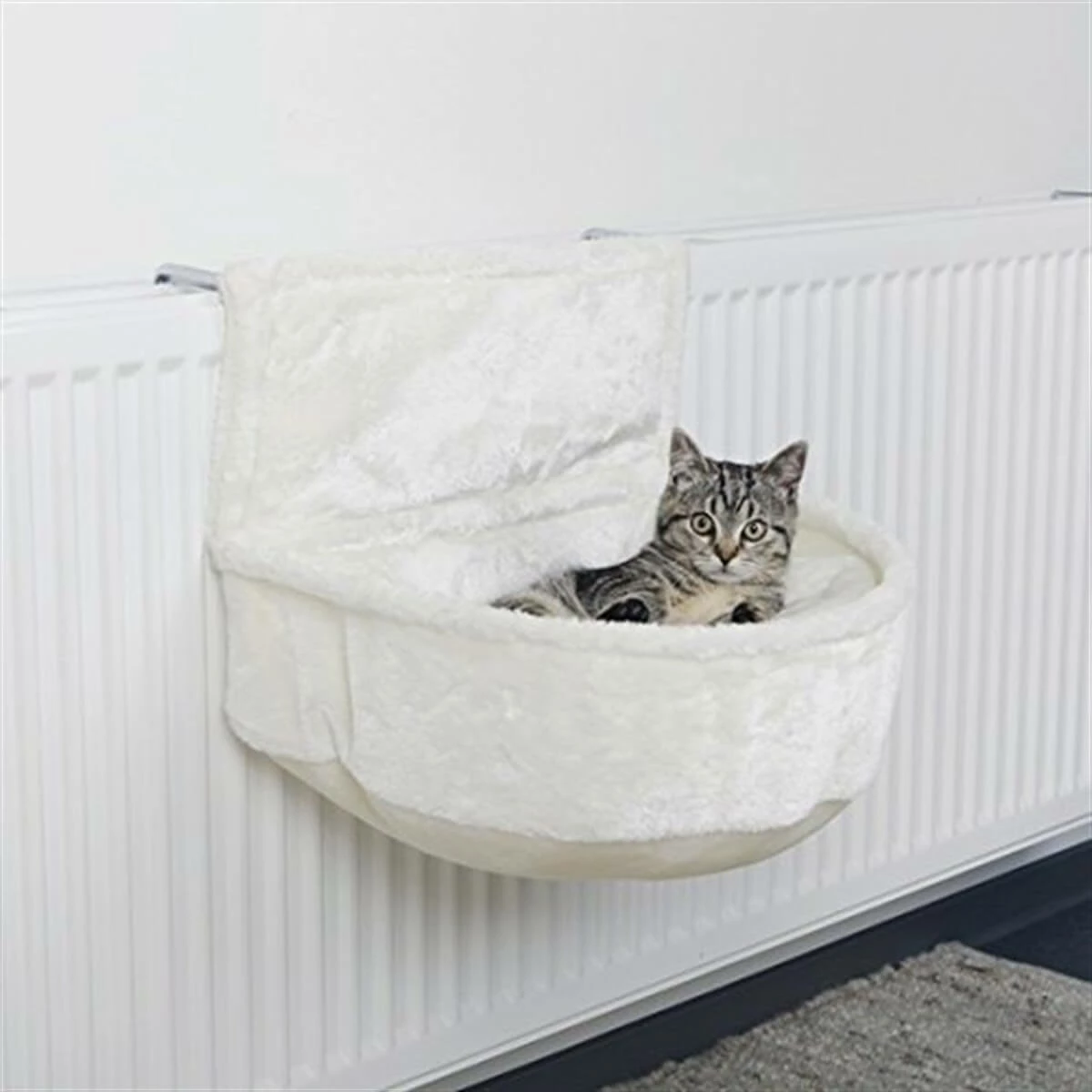 Kısa tüylü peluştan üretilmiştir. Kedi radyatör yatağının düzgün ve sağlam durmasını sağlayan sağlam metal iskelete sahip, radyatör bağlama kolları 9cm ile 12cm arası ayarlanablir, tüm konvansiyonel radyatörler için uygun kedi kalorifer yatağıdır. İçerisinde çift taraflı kullanılabilir polyester dolgulu çok rahat yatağı vardır. 30C’de makinada yıkanabilir. Yatağın için elde yıkanabilir. Beyaz renklidir.